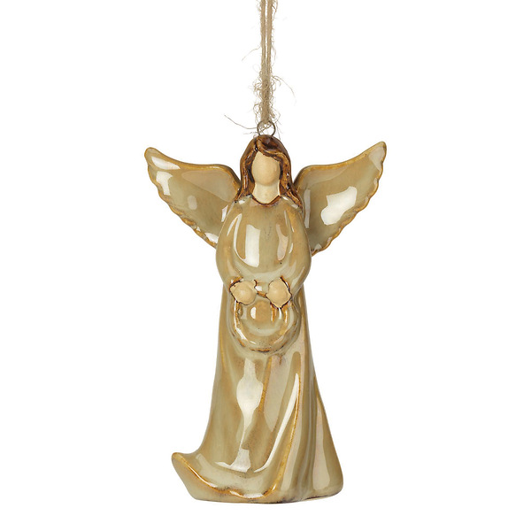 Ceramic Angel Ornament holding a wreath, 5"H