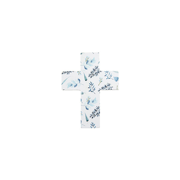 This new addition to the Spiritual Harvest mini crosses features lovely blue floral patterns on a white background. Wooden, easel back cross with a metal hanger for easy display. Measures 4"H