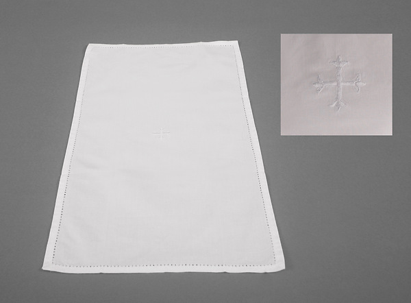 This purificator is made of 100% cambric linen that is finely woven and features an embroidered white Latin Cross in the center. Very absorbent. Machine washable. Sold in packs of 3. Dimensions: 20" x 11". Imported.