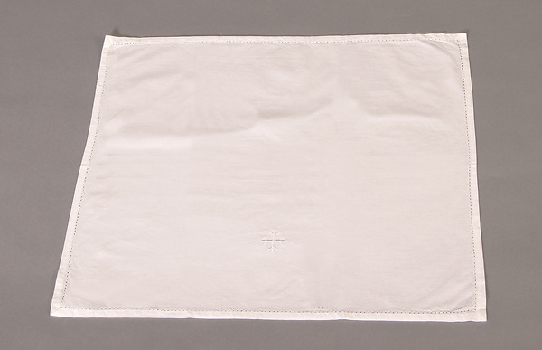 This lavabo towel is made of 100% cambric linen that is finely woven and features an embroidered white Cross at the edge. Machine washable. Sold in packs of 3. Dimensions: 20" x 16". Imported.