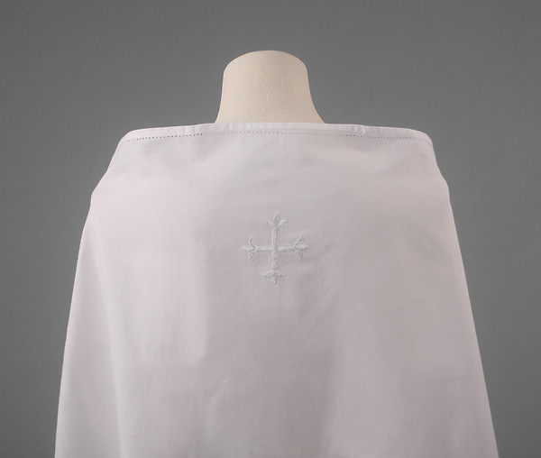This Amice is made of 100% cambric linen that is finely woven. Features an embroidered white Cross. Machine washable. Sold individually. Dimensions: 20" x 40".