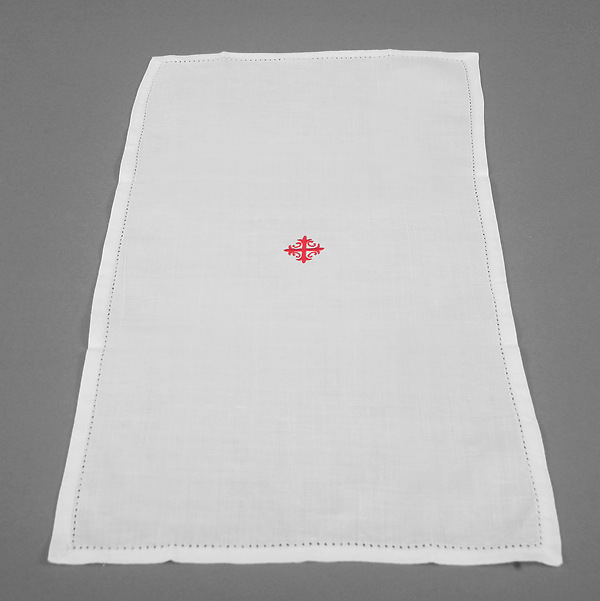 This purificator is made of 100% cambric linen that is finely woven and features an embroidered Red Cross and Vine in the center. Very absorbent. Machine washable. Sold in packs of 3. Dimensions: 20" x 11". Imported.