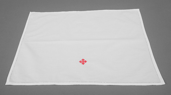 This lavabo towel is made of 100% cotton that becomes softer with each wash and features an embroidered red Cross and Vine design at the edge. Very absorbent. Machine washable. Sold in packs of 3. Dimensions: 20" x 16". Imported.