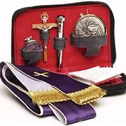 The following items and their quantities are included in the kit product: Koleys K151 7 Host Cap Sick Call Set Soft Grey Suede 6 1/2" x 4 1/4" x 1 1/2"