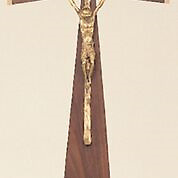 Processional Crucifix. 12” bronze crucifix mounted on 20” walnut cross, with satin bronze tips.