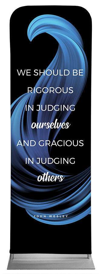 Text: "We should be rigorous in judging ourselves and gracious in judging others" - John Wesley