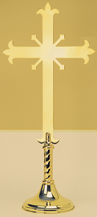 Highly polished and clear lacquered brass altar cross with corpus. 28"H., 7" base.
