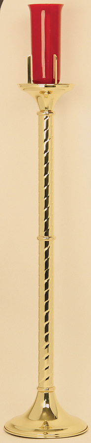 Highly polished and clear lacquered brass sanctuary lamp, to bobeche, 10-1⁄2" base. 7-day glass not included.