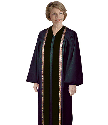 Shown here in our midnight blue Peachskin with black-gold metallic wheat ribbon trim, the beautiful RT Wesley 464F brings a touch of elegance to any service. Construction details include