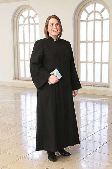 Robe has an A-line silhouette with princess seams. Be aware this robe runs large in it's sizing. Features a front placket with full length concealed zipper with mandarin collar. Available with flared sleeves, full sleeves, or full sleeves with doctor bars. Side seam pockets with microphone cord openings. Available lined or unlined. Fabric is a linen look made of 70% Polyester/30% Rayon. Also available in black, ivory, grey, or royal blue.