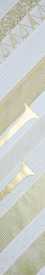 The Pair of Lectern Scarves combines a selection of cotton prints—some white on white, and some with gold metallic overprinting--in diagonal bands accented with faux leather metallic gold herald trumpets and lined in complimentary cotton making this a versatile design for Christmas and Easter services.