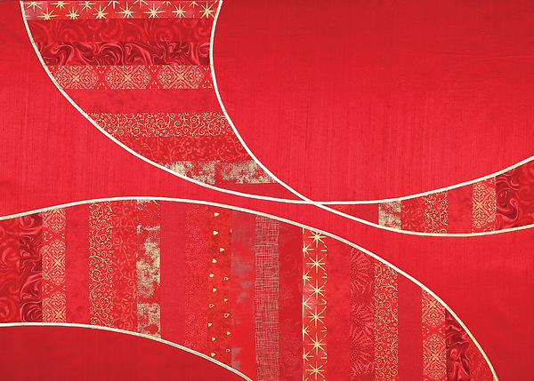 The Helix design is made of pieced cotton prints and batiks and lame’ on a base of red silk dupioni creating a modern helix shape. Why a helix? Because God’s love is in our DNA. This design works well for a variety of worship spaces from simple to quite ornate. The striking shades of red make this a perfect choice for the season of Pentecost and also versatile enough to work for special Holy Days.