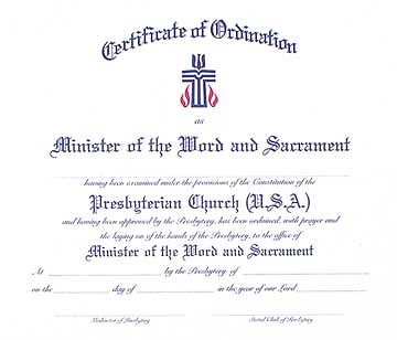 Minister of the Word and Sacrament. Book of 15 with envelopes and record stubs. 10" x 8"; suitable for framing