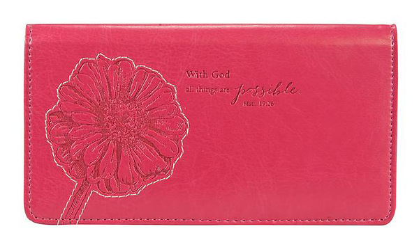 Pink Checkbook Cover with God All Things Are Possible Matthew 19:26