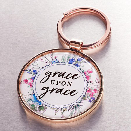 Share the sweet truth found in John 1:16 by giving your daughter, girlfriend, cousin or sister the Grace Upon Grace Keyring In Tin. She will carry around the Christian keyring and be motivated each time she reaches for her keys to show grace to the people in her life, just the Lord extends grace to His children. The John 1:16 Keyring In Tin has an epoxy-filled front with the message, Grace upon grace and a stamped metal back with the verse from John 1:16 shown. With a watercolor and floral pattern on the front, the Keyring In Tin: Grace Upon Grace John 1:16 is also designed with a rose gold sheen, adding an extra touch of lovely to the floral keyring. Split Metal Ring Epoxy-Filled Front Stamped Metal Back Grace Upon Grace Message On Front John 1:16 Scripture On Back Durable Matt Tin Gift Box With Embossed Design On Lid