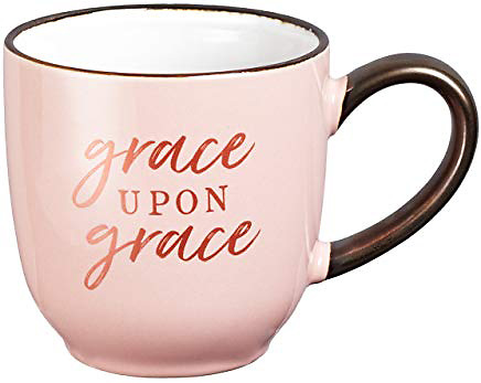 For from his fullness we have all received, grace upon grace. John 1:16 Pour a favorite hot beverage into the Grace Upon Grace Coffee Mug and be reminded of how, not only does the Lord extend grace to us as His children, but how we are to model and extend that same grace to others in our lives. This Christian mug makes a sweet gift for your granddaughter, niece or wife, who can bring the ceramic mug into the workplace and add a touch of faith, or she can reach for the John 1:16 Mug each morning before she engages in Bible reading or devotional time with the Lord. The Coffee Mug: Grace Upon Grace John 1:16 Coffee Mug is made of ceramic with the Grace upon grace message in a rose gold-colored font on the front of the pink Christian gift. The Grace Upon Grace Mug also has a brown carry handle and rim, adding a trendy design that she will love. Capacity: 11 fl oz Ceramic Mug John 1:16 Scripture Brown Carry Handle Gift Box Packaging