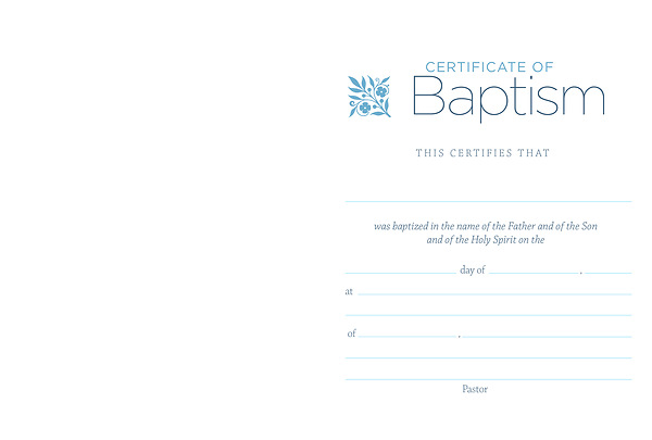 This well-designed Baptism certificate works well for Baptism occasions. Space for name, date, Church and Address, and pastor’s signature. 5.5'' x 3.5''. Pack of 6.