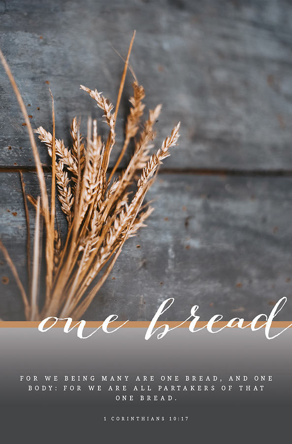 Scripture: “For we being many are one bread, and one body: For we are all partners of that one bread.” 1 Corinthians 11:24-25 KJV. Size: 8.5" x 11" folds to 5.5" x 8.5"
