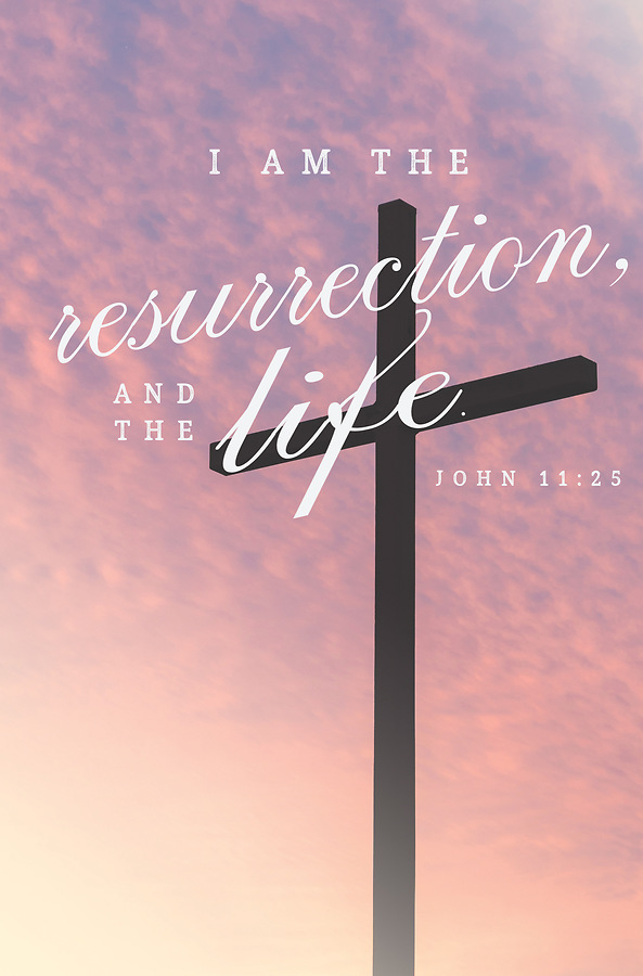 Scripture: “I am the resurrection, and the life.” John 11:25. KJV. Size: 8.5" x 11" folds to 5.5" x 8.5"