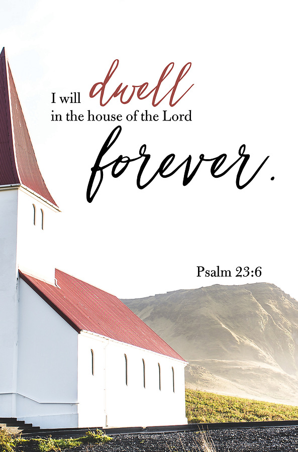 Scripture: “I will dwell in the house of the Lord forever.” Psalm 23:6 KJV. Size: 8.5" x 11" folds to 5.5" x 8.5"