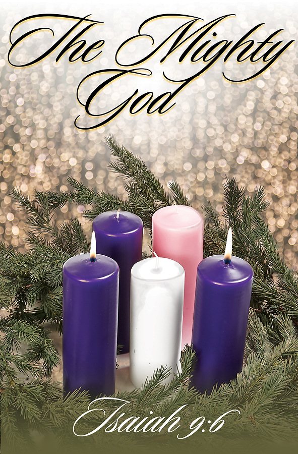 Regular 8.5" x 11" size bulletin featuring an advent wreath with two candles lit signifying the 2nd week of Advent.
