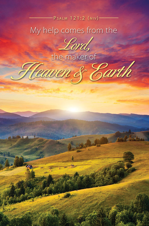 A vibrant bulletin featuring a colorful sky during sunset that can be used for the Inspirational occasions. Scripture: “My help comes from the Lord, the Maker of heaven and earth.” Psalm 121:2 (NIV)