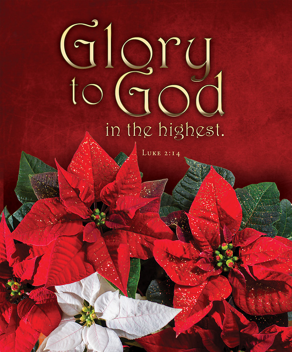 A festive legal size bulletin featuring beautiful red and white poinsettias. This bulletin can be used during the Christmas occasion. Text: Glory to God. Luke 2:14 Scripture: “Glory to God in the highest, and on earth peace, good will toward men.” Luke 2:14 (KJV)