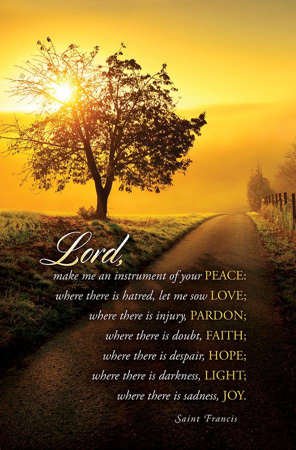Prayer of Saint Francis regular size bulletins feature a peaceful country road image with part of the prayer: