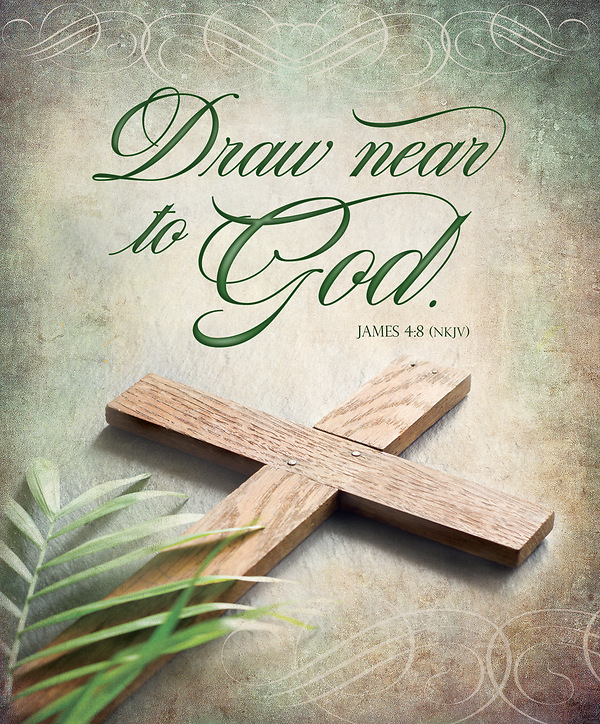 Text: Draw near to God. James 4:8 (NKJV). Size: 8.5" x 14" folds to 7" x 8.5"