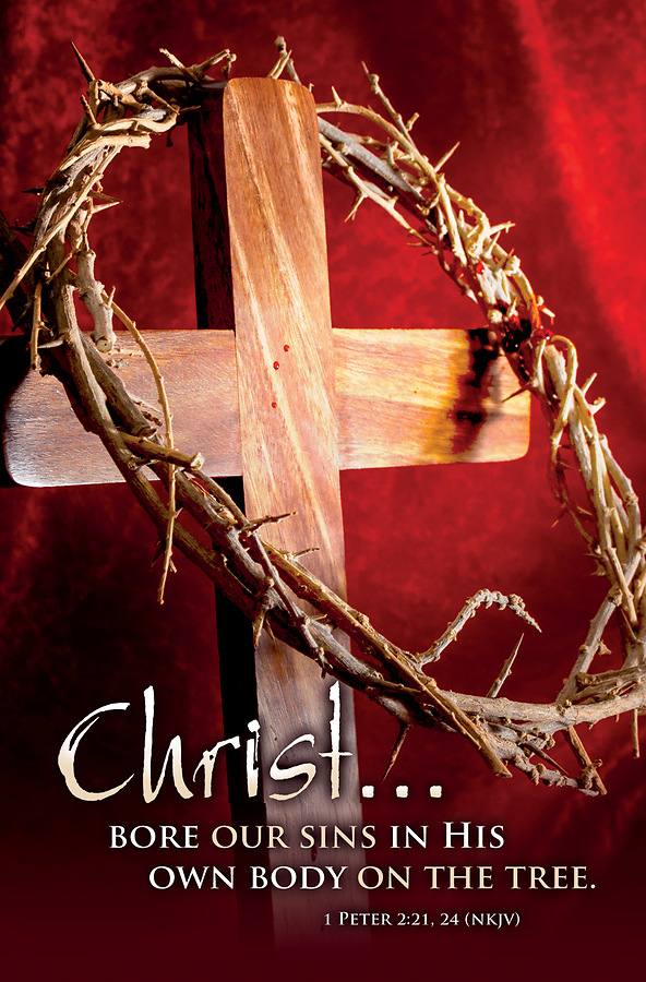 Text: Christ…bore our sins in his own body on the tree. 1 Peter 2:21, 24. (NKJV) Size: 8.5" x 11" folds to 5.5" x 8.5"