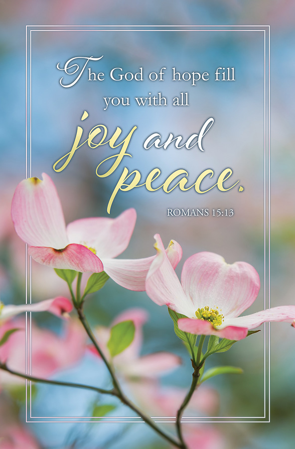 Scripture: Romans 15:13 (KJV) Bulletin is regular size (8.5" x 11") that folds to 8.5" x 5.5" for presentation.