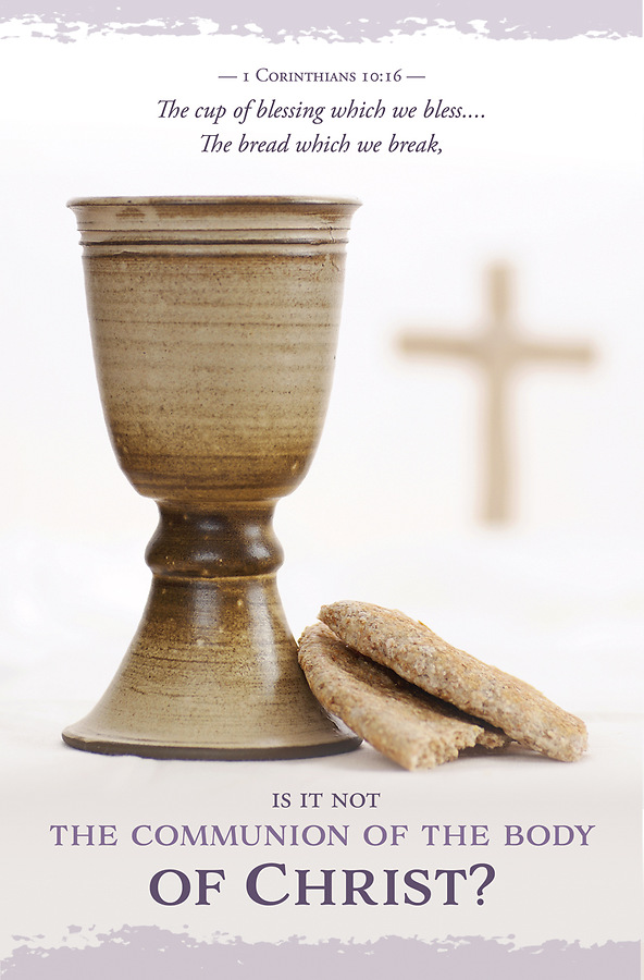 Scripture: 1 Corinthians 10:16 (KJV). Bulletin is regular size (8.5" x 11") that folds to 8.5" x 5.5" for presentation.