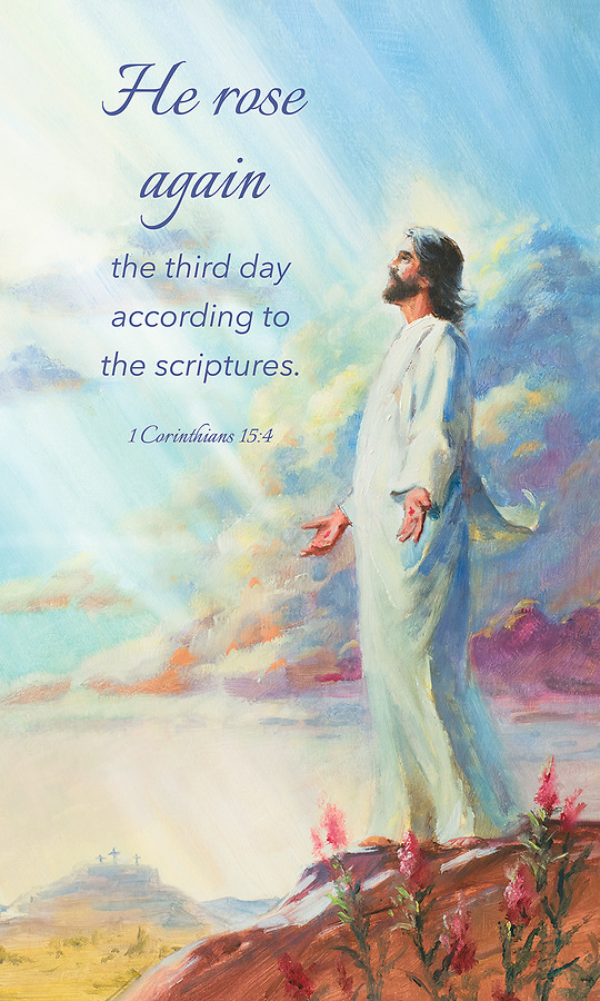 Celebrate the resurrection with this Easter themed banner featuring a portrait of Jesus and the message of 1 Corinthians 15:4. Text: He rose again the third day according to the scriptures. Banner is 3' x 5' and made of fabric. Also available in 2' x 6' and in bulletins, envelopes, and letterhead.