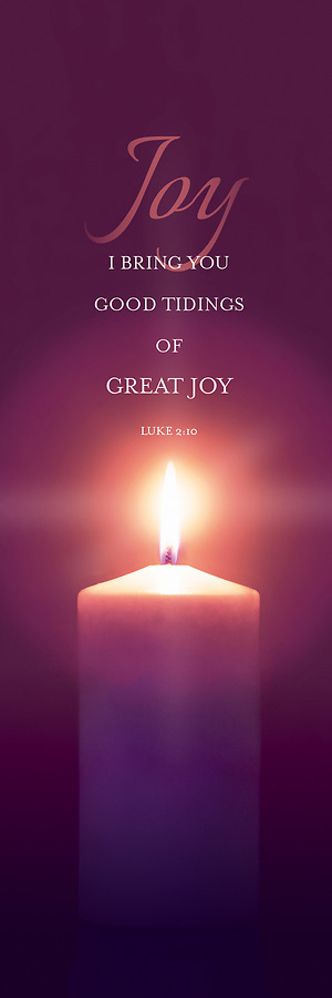 A simple, elegant banner that beautifully displays the message of Joy for the third week of Advent. Text: Joy - I bring you good tidings of great joy. Luke 2:10. Made of fabric this banner can be mounted on a banner stand or on the wall via a dowel kit. Also available in 3' x 5'. For matching bulletin see 656248344309 (regular size) or 656248344316 (legal size).