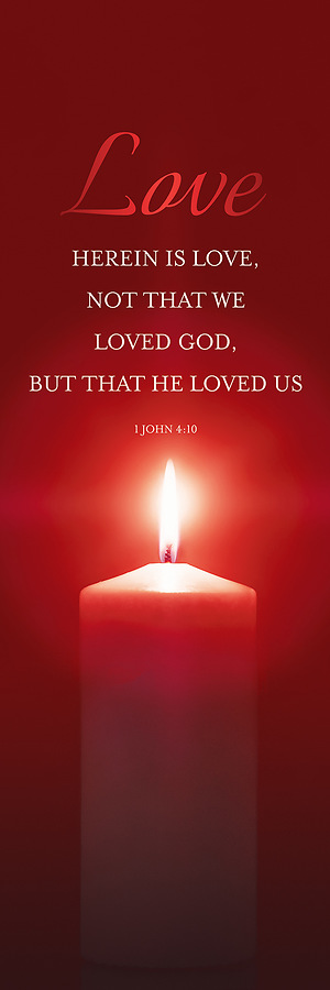 A simple, elegant banner that beautifully displays the message of Love for the fourth week of Advent. Text: Love: Herein is love, not that we loved God, but that He loved us. 1 John3:10. Made of fabric this banner can be mounted on a banner stand or on the wall via a dowel kit. Also available in 3' x 5'. For matching bulletin see 656248344408 (regular size) or 656248344415 (legal size).