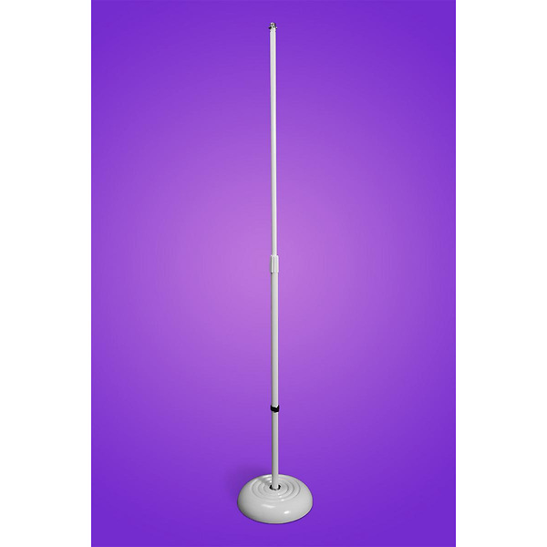 An industry standard! The 7lb. sand-cast base is sturdy enough for road abuse yet light enough to carry. This painted white stand features a diecast zinc clutch. Microphone clip not included.