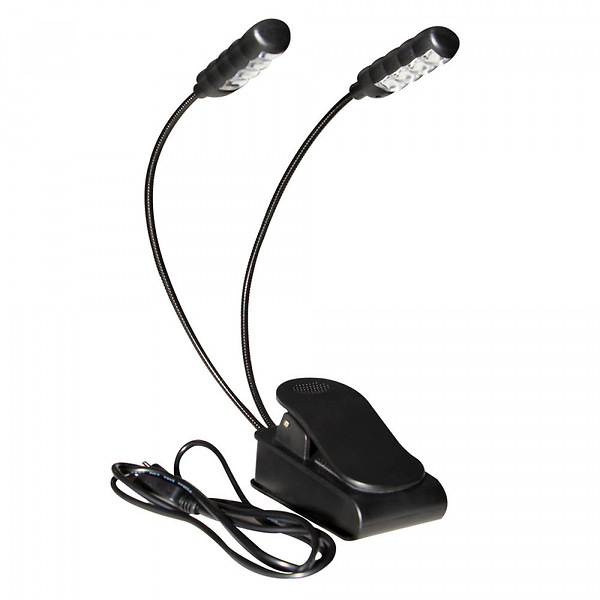 Big brother to the LED2214, the dual head On-Stage LED2224 provides 15 hours of high-intensity LED illumination, charges in under 6 hours and clips securely to almost any surface imaginable. Lithium-ion battery-powered, the LED2224 deploys 2 independently adjustable lamp heads, each with 4 high-intensity LEDs, changeable from white to red, mounted on individual, flexible goosenecks for complete coverage at any angle. And with an innovative, highly-adaptive clip that secures to music stands, desktops, tables and more, the LED222 shines in any situation.