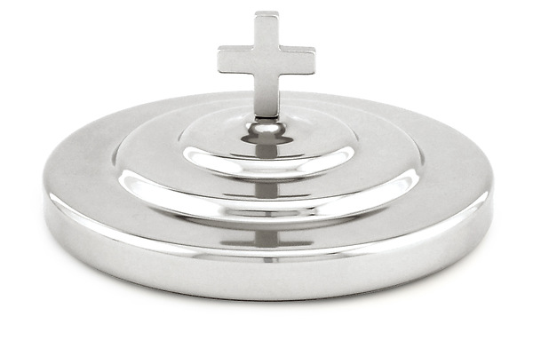 6 3/4" dia. Our bread plate cover bear the holy cross, encircled and supported by a three-tier pedestal, which symbolizes the Holy Trinity.
