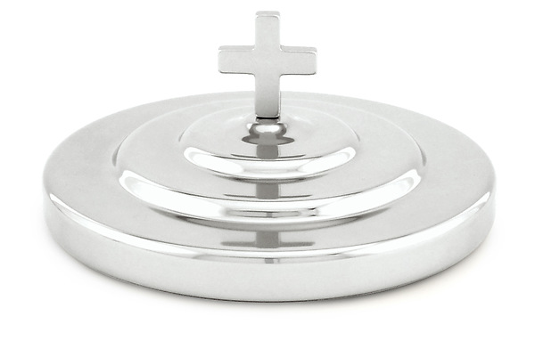 This Silvertone Communion Bread Plate Cover, along with our other silver appointments, will add grace and style to your Communion service. The Cover offers the beauty of silvertone communionware with a tarnish-free permanently polished finish and features three tiers with a Latin cross finial. This piece can be used with our silvertone Communion Bread Plates/Bread Plate Base and complements other silvertone pieces.