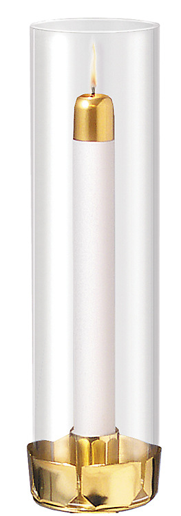 Durable machined acrylic globe protects candles against drafts. 3" diameter, 11" h.