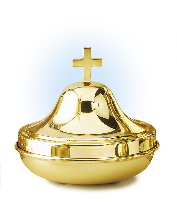 This elegant and shining bright gold solid brass Intinction Set without Base features a seamless rounded body, a two-tiered top with a Latin cross at the apex, and a Chalice. This Set is created from fine materials with superior craftsmanship and unsurpassed excellence. It is designed to deliver years of trouble-free service and will be a fine asset for your Communion Service by intinction.