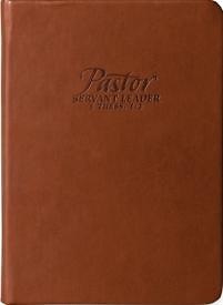The Pastor Servant Leader journal has a cover made of imitation leather and features 1 Thessalonians 1:3. It holds 96 lined pages. Scripture is printed on the bottom of each page. It makes a great gift for pastors and ministry servants.