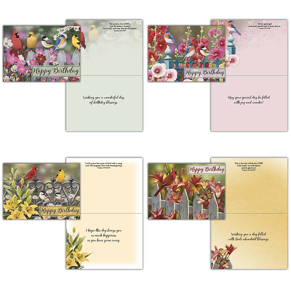 12 Cards - 4.72” x 6.5” • 3 each of 4 designs. Each card decorated on the inside • Versed with KJV Scripture. • William Vanderdasson