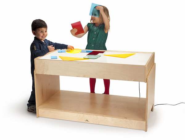 Our biggest light table featuring new and improved lighting! New LED lighting system displays brighter, whiter and more uniformly distributed light, uses less electricity, and produces less heat. They're even waterproof! Illuminated surface is great for learning about shapes and colors. Constructed in beautiful birch plywood with natural UV finish. The LED lights are UL listed in USA and Canada and guaranteed to last for 50,000 hours. 24" L x 42" W x 24"H. 60 lbs. Ships partial RTA via UPS Oversize. GreenGuard Certified. Made in the USA. Lifetime warranty.