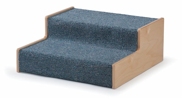 Steps made of natural birch laminate and covered in carpet. Part of the Woodscapes play set. 20" x 20" x8.5". 15 lbs. UPS Ground. Made in USA. GreenGuard Certified. Lifetime Warranty.
