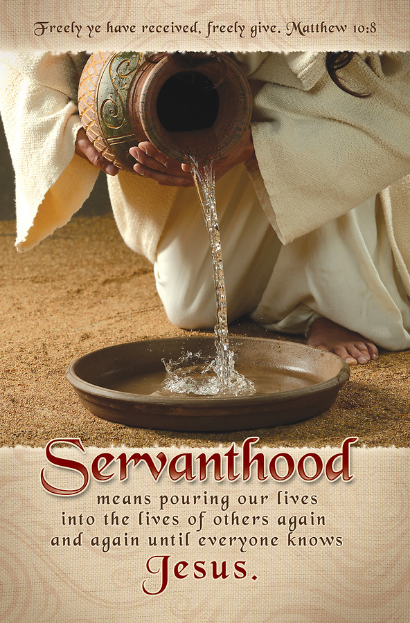 Text: Freely ye have received, freely give. Matthew 10:8 (KJV). Servanthood means pouring our lives into the lives of others again and again until everyone knows Jesus.