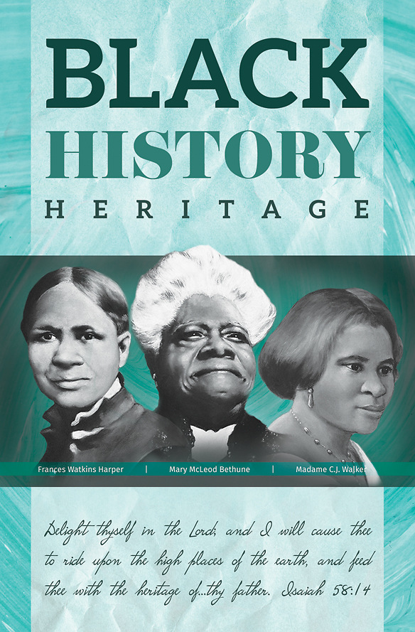 Celebrate Black History Month with this bulletin that features images of Frances Watkins Harper, Mary McLeod Bethune, and Madame C.J. Walker. . Size: 8.5" x 11" folds to 5.5" x 8.5"