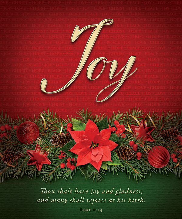 Text: Joy - Thou shalt have joy and gladness; and many shall rejoice at his birth. Luke 1:14