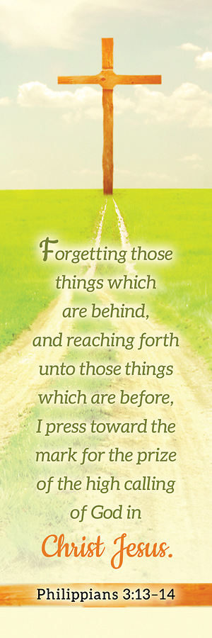 Scripture: Forgetting those things which are behind, and reaching forth unto those things which are before, I press toward the mark for the prize of the high calling God in Christ Jesus. Philippians 3:13-14. Size: 2" x 6.5"