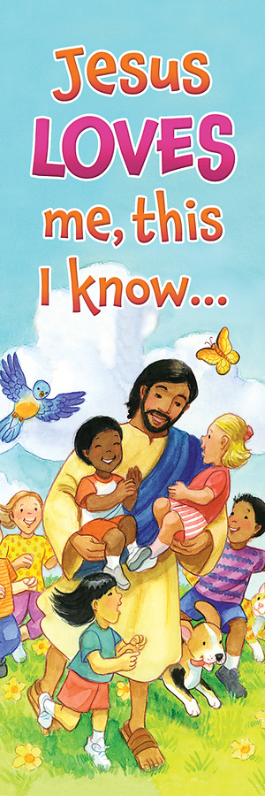 Front: Jesus loves me, this I know… Back: for the Bible tells me so! Scripture: We love him, because he first loved us. 1 John 4:19.